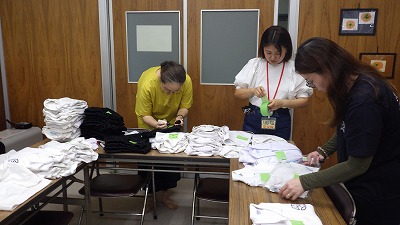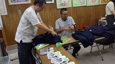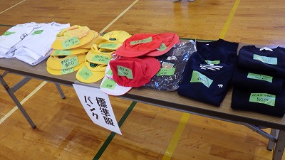 9月18日授業参観の前に、PTA役員の方が標準服バンク交換会の準備を行いました。事前の呼びかけもあって、たくさんの服やシューズが集まりました。ご協力ありがとうございました。