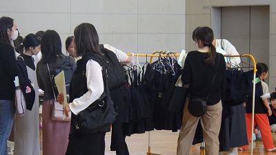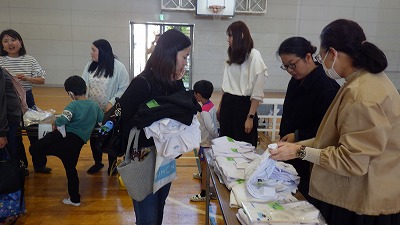 10月31日の就学時健診が始まる前に、標準服バンクを行いました。事前の呼びかけにご協力いただき、商品も多く入荷されました。そのおかげで、多くの方にご利用いただくことができました。標準服や体操服等を提供していただいた皆様、ありがとうございました。