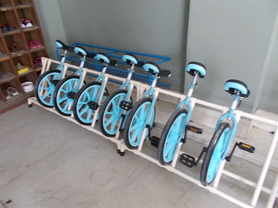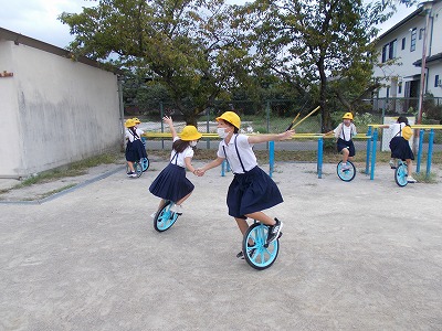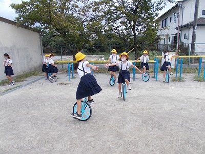 今日から新しい一輪車が入りました。子どもたちは真新しい一輪車に乗って、楽しそうに校庭を走っていました。これからも大切に使っていきます。