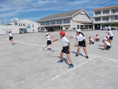 年生体育】リレーの練習を行いました。赤と白に分かれ、大きな声で応援しながら練習に取り組んでいました。