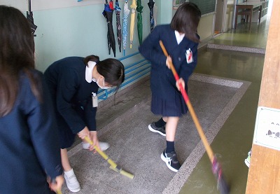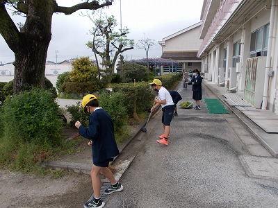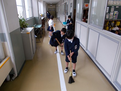 新年度が始まり、みんながんばって清掃に取り組んでいます。1年生も教室や廊下、中庭の清掃に協力して取り組んでいます。