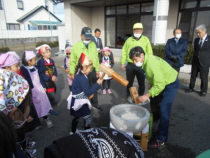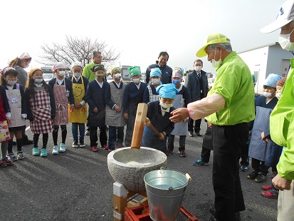餅つきの後は、昔の生活についてのお話を地域の方から伺い、その内容を総合学習でまとめていく予定です。