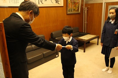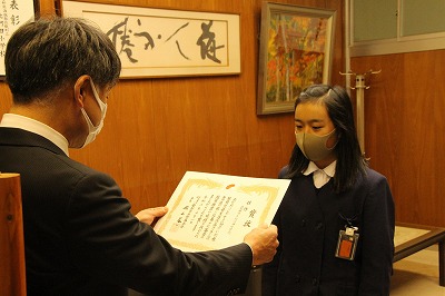 今日は、赤い羽根作品コンクール書写の部とポスターの部の入賞者の表彰を行いました。