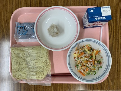 今日は、冷やし中華でした。天気もよくなり、とても暑くなったので、暑い日にはぴったりの献立でした。