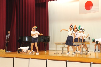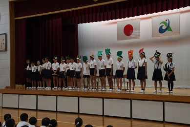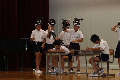 今日の児童集会では、給食委員会による、劇が行われました。子どもたちの嫌われ者の野菜レンジャーが、体調の悪くなった子どもたちを助けるストーリー。先週休み時間に一生懸命練習していたかいもあり、好き嫌いなく食べることの大切さを楽しく伝えてくれました。