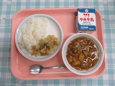 ごはん、牛乳、カレーライス、福神和え