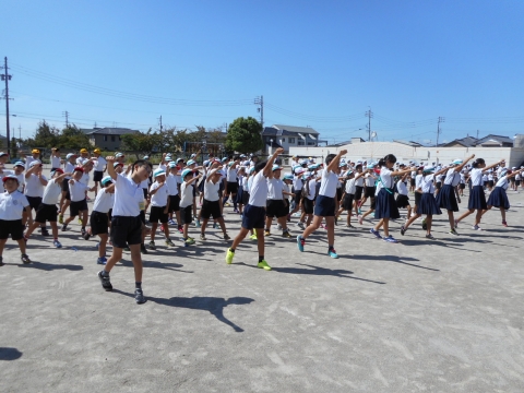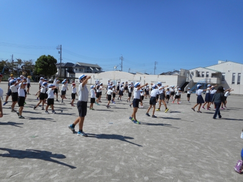 運動会まで後2日と迫り、赤、青、黄、緑、各ブロックの応援練習も、白熱してきました。