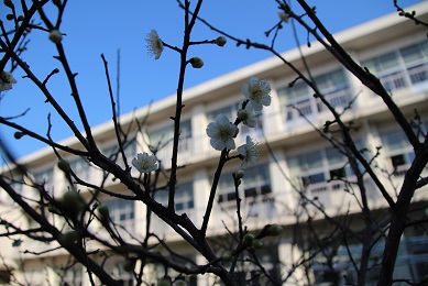 中庭の梅が2週間ほど前から咲き始めています。まだ満開とまではいきませんが、春の息吹を感じる風景です。来週24日(金)は授業参観となりますので、お越しの際は満開の梅を楽しんでいただけるかもしれません。