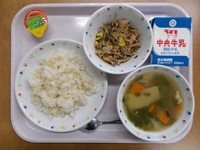 ・今日の給食の「ロウカット玄米」の「ロウ」は、ろうそくの「ろう」と同じで「あぶら」の仲間のこと。
