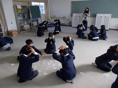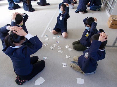 今日は4年生が国語の授業で、冬の行事を題材にした手作りかるたを使ってかるたとりを行いました。取った枚数を競い合いながら、楽しく取り組むことができました。