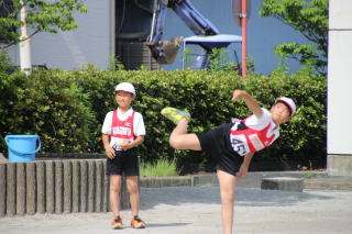 昨日の雨で児童集会は本日に順延。愛西市陸上競技会激励会が行われました。外での集会の利点を生かし、デモンストレーションが行われました。各種目の選手が、全校児童に日頃の成果を見せることができました。大会は6月4日(土)、佐織総合運動場で行われます。今年もアベック優勝目指し、選手達は気合いが入っています。応援、よろしくお願いいたします。