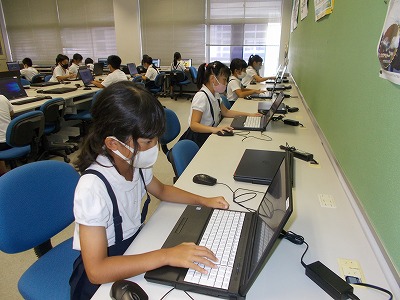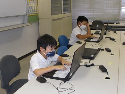 今日は3年生がコンピュータ室でパソコンを活用した学習を行いました。各自がタイピングを練習できるサイトにアクセスして、キーボードでローマ字を打ち込む学習に取り組みました。選択した言葉を正確にタイプすると次の場面に進める、というゲーム感覚のサイトもあり、どの子も楽しく集中して練習に取り組むことができました。今後もICT機器を積極的に活用し、子どもたちの学習に生かしていきたいと思います。ローマ字のタイピングに挑戦!キーボードからアルファベットを探すのが大変そうです。楽しく集中して取り組めました。