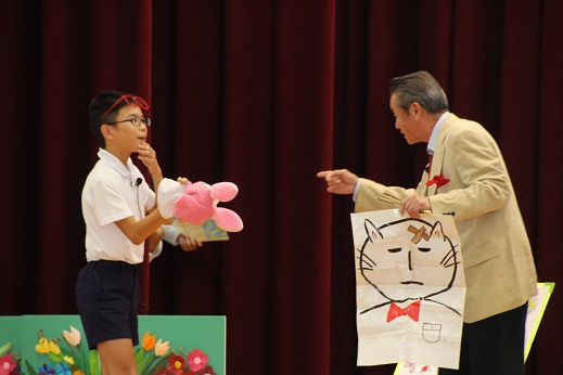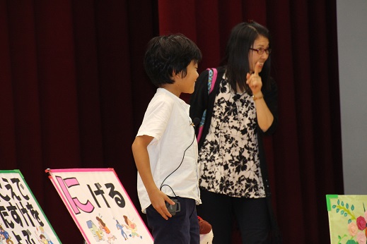 5時間目、全校児童を対象に、防犯訓練を行いました。不審者から避難する練習をし、そのあとは体育館で愛知県警察の「のぞみ」による防犯に関する劇を見せていただきました。3年生と6年生の子にも代表として劇に参加してもらい、「たすけてー!」と大きな声で叫んでもらいました。楽しく、命を守ることについて学習することができました。