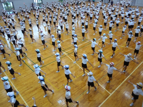 本日は、雨天のため、体育館で全校練習を行いました。