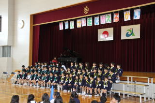 3時間目、1年生を迎える会を行いました。6年生が1年生と手をつなぎ、アーチをくぐりながら入場。なぜか、1年生と6年生の先生も、仲良く手をつないで登場。上級生からは学校の紹介が行われ、校歌も一緒に歌いました。1年生、かなり校歌を覚えていました。教室で、しっかり練習しているんですね。児童会執行部の質問、「学校は楽しいですか?」に「うん、楽しい!」とほとんどの子が答えていました。1年生の皆さん、これからもっと楽しいことが待っていますよ。