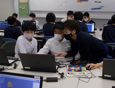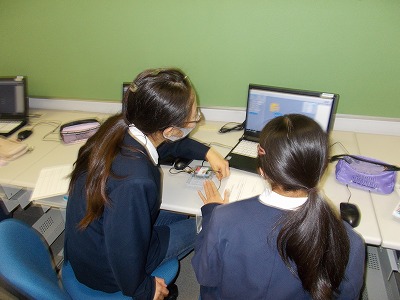 今日は6年生理科の電気の授業で、講師の先生をお招きしてプログラミングを行う学習を行いました。明るさのセンサーと人を感知するセンサーが作動してライトが点灯するよう、専用のソフトを使ってプログラムを組み、実際に作動するかどうかを確かめました。