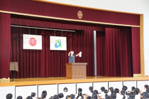 その後、「みんなに考えてもらいたいこと」として、「2学期に入ってから、人を傷つけるような言葉を言っていないか、友達にいやな言葉を言っていないか」を、各自で心の中で思い出す時間をもちました。そして、「もし、そういうことを言ってしまっていたな、と思ったら、これからは、気を付けよう!」とお話されました。