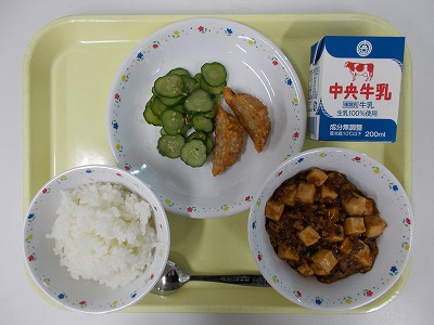 ご飯 牛乳 愛知のぎょうざ マーボードウフ きゅうりのごまあえ