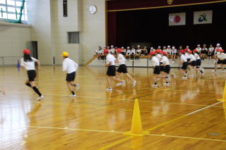 今年も体力テストの季節がやってきました。今日はあいにくの雨模様のため、体育の時間を使い、多くのクラスが「シャトルラン」を行いました。ドレミの音楽に合わせて走り、持久力を試す種目です。リズムに合わなくなると、リタイアとなるため、少しずつ走っている人数が減っていく様子が分かるでしょうか。汗をいっぱいかき、自分の記録に挑戦する真剣なまなざしが見られました。