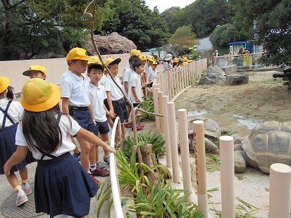 今日は1・2年生合同で東山動植物園へ出かけました。ぐずついた天気が多いこの頃ですが、今日は晴れ。天気が味方をしてくれました。いろんな生き物を見て、クイズなどにも答えながらそれぞれの班で協力して見学をしました。最近話題のイケメンゴリラの「シャバーニ」は奥のほうで休憩していたようで、残念ながらよく見えなかったようです。保護者の方におかれましては、朝早くからお弁当作りをしてくださったことと思います。ご協力、ありがとうございました。