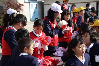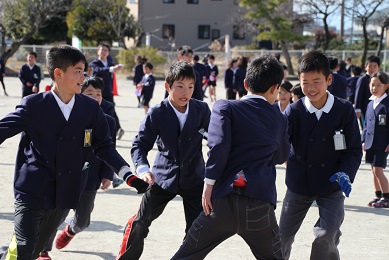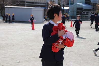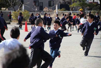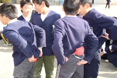 今日の「しっぽ取り」は5年生が施行係を務めました。どの学年も多くの児童が参加し、決められた区域で必死に取りに行ったり、逃げたりしていました。赤白帽子をズボンにはさみ、どれだけ取れたかを競いました。中には、赤白帽子に名前を書いていない子もちらほらいました。もう一度お家でも、持ち物の記名を確認していただきますようお願い致します。