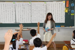2時間目、3年2組で国語の研究授業を行いました。本校では昨年度より、説明文の読み取りについて、学校全体で研究を行っています。それぞれの段落の役割についておさえながら、本文に出てくるこまの中で、どれで遊びたいか、また、その理由を説明するという活動でした。後半の班での話し合い活動では、各班の司会が進め、発表した後に質問の時間を作り、ただの発表会で終わらない、中身のある話し合い活動がされていました。普段からの学習習慣がきちんと発揮された授業となりました。