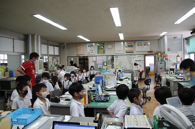 1年生が生活科の学習で学校探検を行いました。今日は、職員室を探検しました。「職員室ってなに?」と思っていた1年生のみなさんですが、これでまた一つ勉強になりましたね。