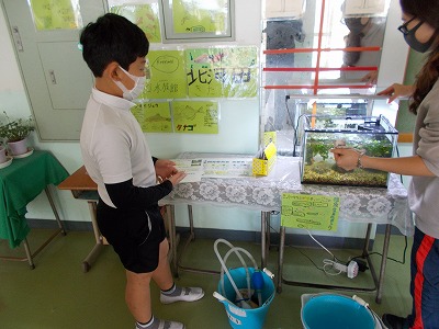 飼育委員会は、水槽の魚に毎日えさをやり、週1回の水換えも行っています。今日は先生にも手伝ってもらいながら、水替えを行いました。飼育委員会のおかげで、北河田小の水槽はいつもきれいです。