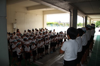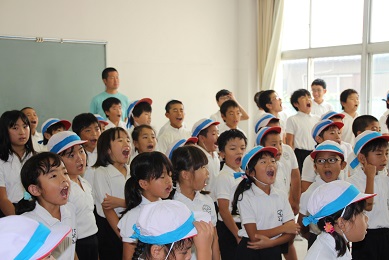 運動会に向け、4色に分かれての応援練習が始まりました。今日はどのブロックも応援歌の練習を熱心に行いました。5・6年生が考えた替え歌を、すぐにみんな覚えていたのには驚きでした。