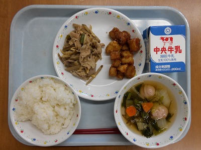ご飯 サメのレモンソース きんぴらごぼう いかしんじょう汁