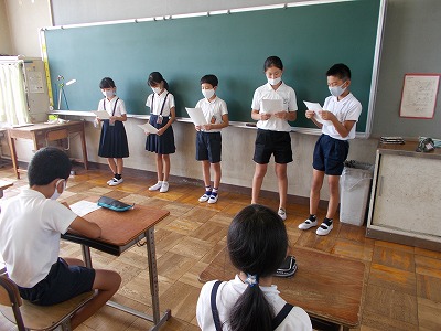 児童会役員が、クラスで伝える内容を説明しました。