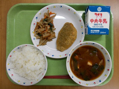 ご飯 牛乳 青じそ入りあじフライのレモンソース きんぴらごぼう 呉汁