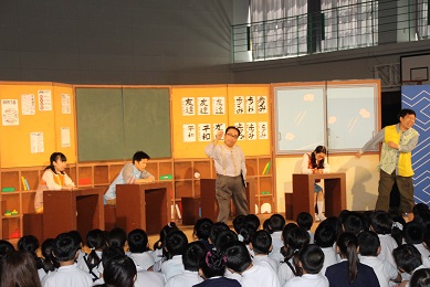 今日の3・4時間目は、芸術鑑賞会。「劇団うりんこ」の方々による「夜明けの落語」を体育館で見せていただきました。落語の話だけに、児童の中には大爆笑だった子もいました。11月12日(土)の学習発表会に向け、演技や小道具、背景などを参考にし、舞台で児童が活躍する会にできるとよいと思います。
