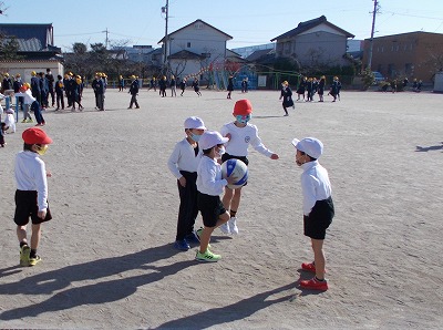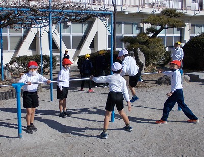 中休みと昼休みには、多くの子ども達が運動場で元気に遊んでいます。今日は日差しも少し暖かく、ボール遊びや大縄跳び、鉄棒、鬼ごっこなど、子ども達は思い思いの遊びを友達と一緒に楽しんでいました。