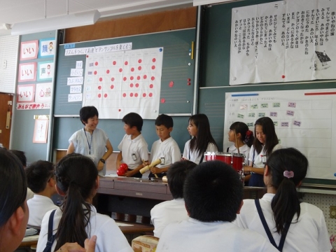 6年2組は、音楽科「リズムをつくってアンサンブル」
