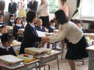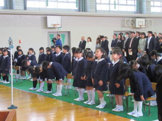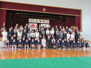 新入学児童58名を迎え、入学式を行いました。桜の花が満開の日となり、西門では写真撮影の行列ができるほどでした。ピカピカのランドセルをかがやかせ、希望にあふれた笑顔がいっぱい見られました。明日からの小学校生活で、いっぱい友達ができると良いですね。