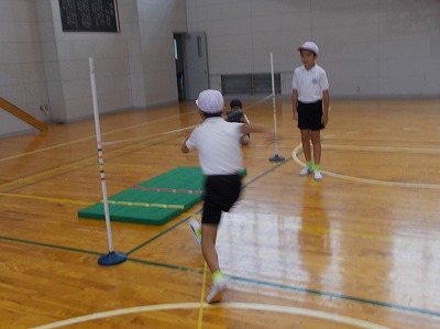 今日の5時間目は、4年生が体育館で走り高跳びの授業を行いました。タブレットを使ってお互いに跳んでいるフォームを撮影し合い、自分の跳び方を確認しながら練習しました。子どもたちはタブレットを使いこなし、友達が跳ぶ様子を上手に撮影していました。