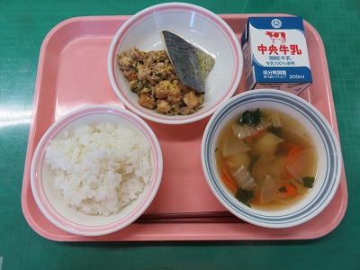 今日は、「ゴーヤーチャンプルー」が出ます。給食では「ゴーヤ」が苦くないように、下ごしらえや、切り方、味付けなど、たくさんの工夫をしています。苦手な子も、ぜひチャレンジしてみてくださいね。