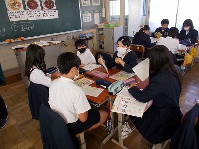 自分の考えたみそ汁について、班で発表し合いました。