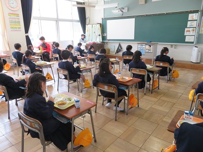 先生のお話を聞いて、食器の正しい位置を確認したり、カレーを麦ごはんと一緒に上手に食べたりしている様子が見られました。