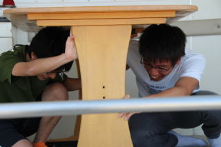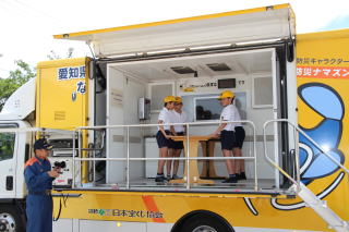 午後、愛西市消防本部より、起震車(別名なまず号)がやってきました。トラックの中には部屋が用意されており、そこで地震を体験できるようになっていました。初めはアトラクションのように感じていた子ども達でしたが、一度体験してみると、表情が変わり、本当の地震ではないとはいえ、怖かったという感想が聞かれました。南海トラフ地震がいつかやってくると言われている愛西市です。今回の体験で、より危機感を感じ、万全に備えておく必要性を感じました。