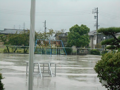 現在の北河田小学校です。台風の接近により、運動会の練習が中止になりました。今年は雨が多く、晴れの日が待ち遠しくてたまりません。皆さん、無事に明日登校してくださいね。