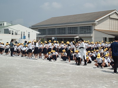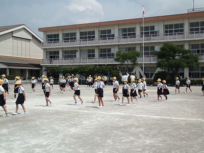 避難訓練が行われました。地震発生、その後、火災が発生したという想定でした。地震発生のため、まずは、自分の身を守る姿勢をしました。その後、理科室からの出火が確認されたため運動場へ避難しました。学校が始まって2週間弱でしたが、落ち着いて避難することができました。