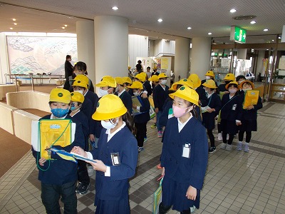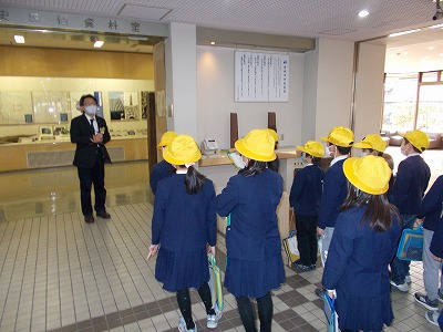 年生が佐織公民館を訪問し、施設の中にある歴史民俗資料室を見学しました。学芸員の方から昔の道具の説明をしてもらったり、実物を見学したりして、昔の暮らしについて学ぶことができました。