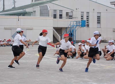 今日の2・3時間目に、児童会行事「スポーツフェスティバル」が行われました。開会式で児童会長が「今こそみんなで楽しもう」というスローガンを発表し、準備運動を行った後、1・2年の徒競走、3~6年の全員リレー、全校での「大玉コロリ」の順で競技を行いました。短い準備期間でしたが、児童会役員や6年生が各競技の運営で素晴らしい働きを見せてくれました。新型コロナウイルスの影響で運動会は中止になりましたが、全校児童で協力して楽しく思い出に残る一日になりました。