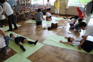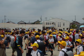 また、授業の後には、地震注意情報発表時を想定し、引き取り訓練を行いました。素早く整列し、保護者の方と手をつないで帰る姿が見られました。足下の悪い中、多くの保護者の方々にご参加いただき、ありがとうございました。