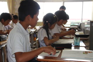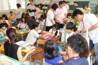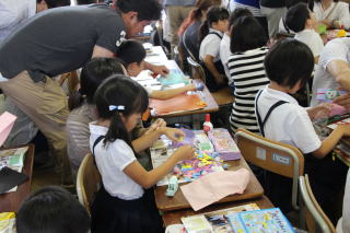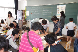 今年は体育館が使えないため、講演会は行いませんでした。その代わり、授業を2時間見ていただく参観とし、普段の学習する姿をじっくり見ていただきました。学年によっては、保護者の方と作品を作る授業もあり、暑い中、汗をかきながら、親子で授業に参加していただきました。