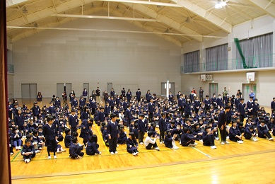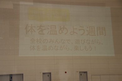 次に、児童会より「体を温めよう週間」と題し、今週と来週の水・木曜日の中休み、全校で遊ぼうという企画が発表されました。大寒を過ぎたとはいえ、寒い日が続きます。寒さに負けないよう、外で遊んで体を鍛えましょう。