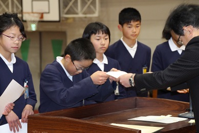 初めに、先週行われたマラソン大会の上位入賞者と、新記録樹立者の表彰がありました。校長先生からは、「さまざまなドラマがありました。最後に必死になってゴールする姿に感動しました。」とのお言葉をいただきました。