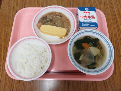 ごはん、牛乳、たまご焼き、冬瓜とえびの煮物、すまし汁